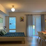 Stylished&Bright studio apartment offre un patio, un balcone e un salottino arredato con uno scrittoio, oltre a comfort moderni come il Wi-Fi e un televisore. I servizi di sicurezza in camera includono una cassetta di sicurezza e rilevatori di fumo. L'alloggio vanta 1 camera da letto con cuscini morbidi o duri antiallergici. L'appartamento è dotato di 1 bagno con un bidet, un bagno alla francese e una doccia. Ci sono anche asciugacapelli e asciugamani.